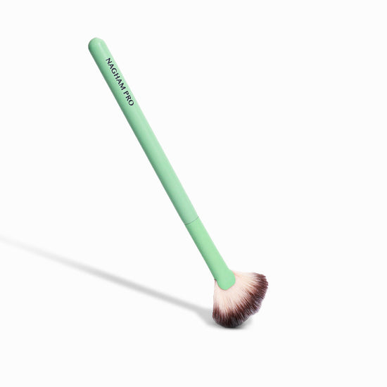 مرري الفرشاة برفق على الهايلايتر المفضل لديكِ, ثم ضعيه على النقاط البارزة من الوجه لإضفاء لمسة نهائية مشرقة. يمكن استخدامه أيضًا لإزالة البودرة الزائدة أو المتساقطة برفق.
