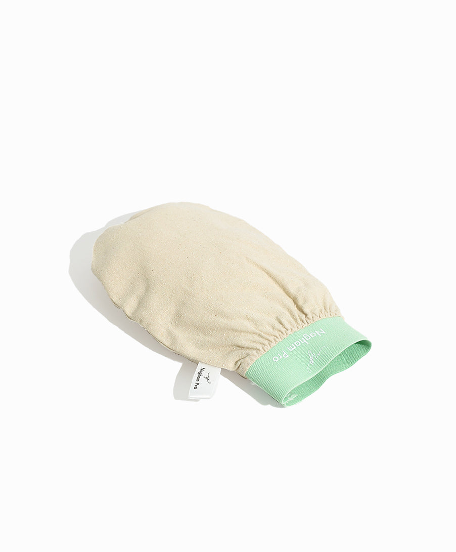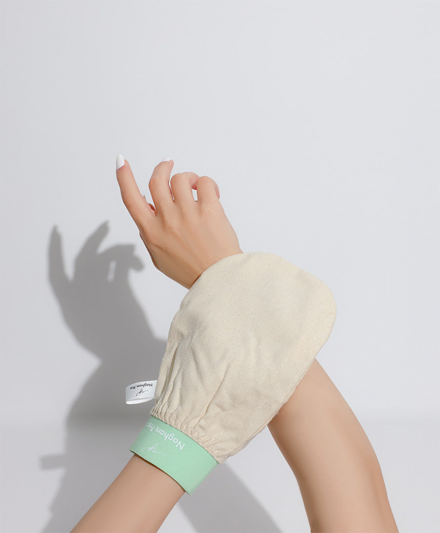 مصنوع من الحرير 100%، يتميز بنقومة فائقة على الجلد ويعمل على التقشير بدون تهيج أو ألم.